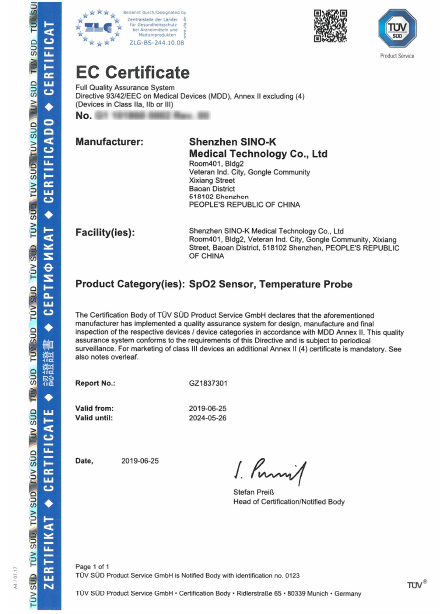 ÖØ¸´ÐÔѪÑõ̽ͷCEÈÏÖ¤