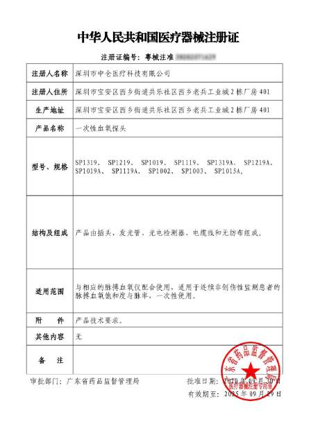 Ò»´ÎÐÔѪÑõ̽ͷCFDAÈÏÖ¤