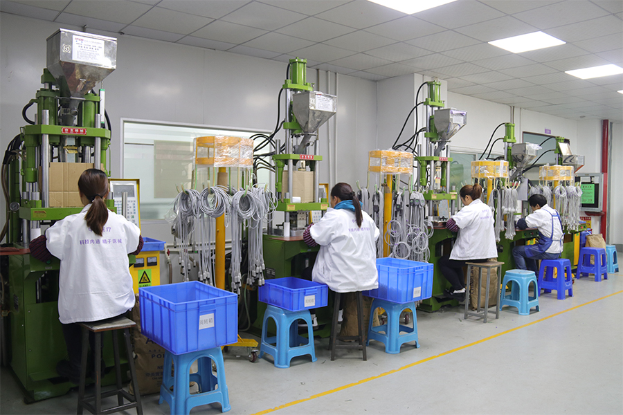 Product injection molding adopts 1.5 tons to 3.5 tons vertical injection molding, and plastic parts molding adopts 80 tons horizontal injection molding machine. The materials used are medical grade TPU, PVC, ABS747, PE, PP, PC, nylon and other raw materials. Color master injection molding